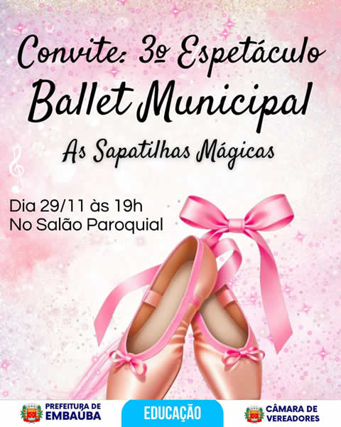 Venha prestigiar o Ballet Municipal no dia 29 de novembro, às 19h, no Salão Paroquial.