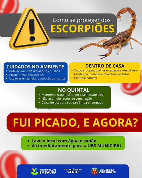 A Rede de Ensino de Embaúba recebeu orientações dos profissionais da saúde sobre os cuidados contra o escorpião neste período de altas temperaturas. Os profissionais da saúde orientaram aos alunos com amostra do aracnídeo.