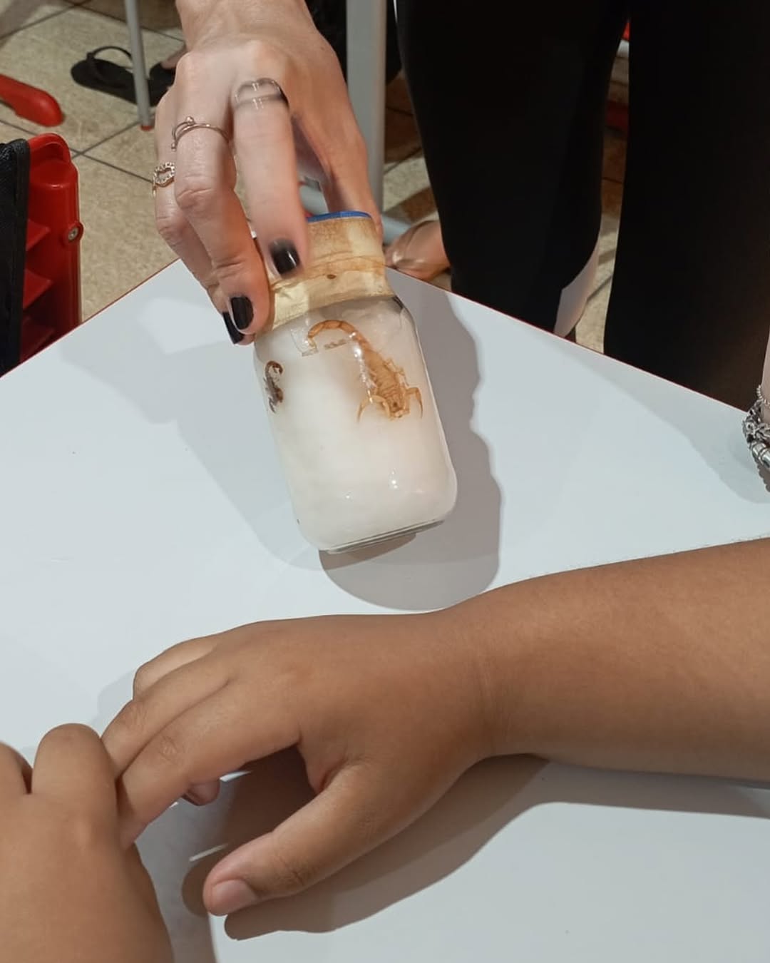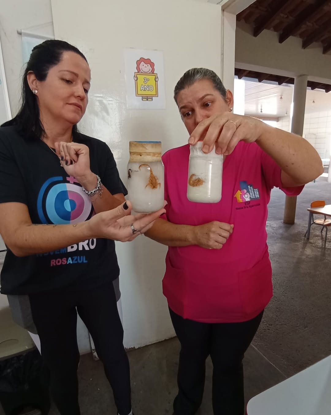 A Rede de Ensino de Embaúba recebeu orientações dos profissionais da saúde sobre os cuidados contra o escorpião neste período de altas temperaturas. Os profissionais da saúde orientaram aos alunos com amostra do aracnídeo.